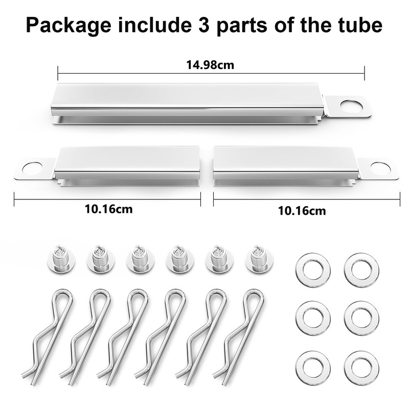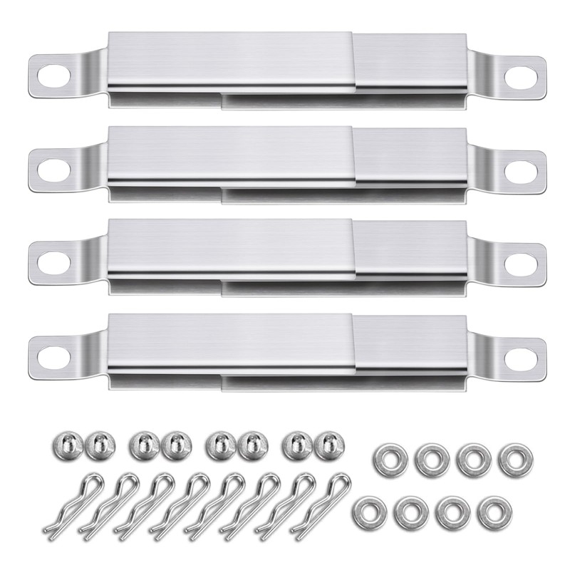 - MATERIAL: The crossover tubes are made of heavy thick stainless steel. DIMENSIONS ► Adjustable, extends from 13 to 24cm, for most gas grills- for Charbroil, Outback, CosmoGrill, Blooma Ultar, Berkley, Uniflame, Napoleon, etc. Set of 4 pack.【Please Note】Compatible grill brands listed as follows are for reference only. Please measure your original for fit.