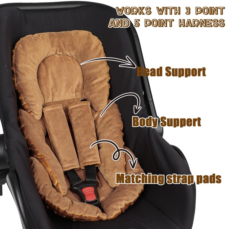 GFU Infant Car Seat Insert Head and Body Support, Reversible Newborn Insert for Carseat with Strap Pads, Soft Stroller Cushion Pillow Insert for Boys and Girls, Fits for Stroller, Swing, Brown