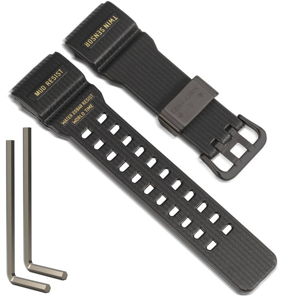 GG-1000 Natural Resin Strap Compatible with Casio Men's G-Shock Master of G MUDMASTER GG-1000-1A3JF GWG-100 Watch Band Replacement Wirstband (Black Blackbuckle)