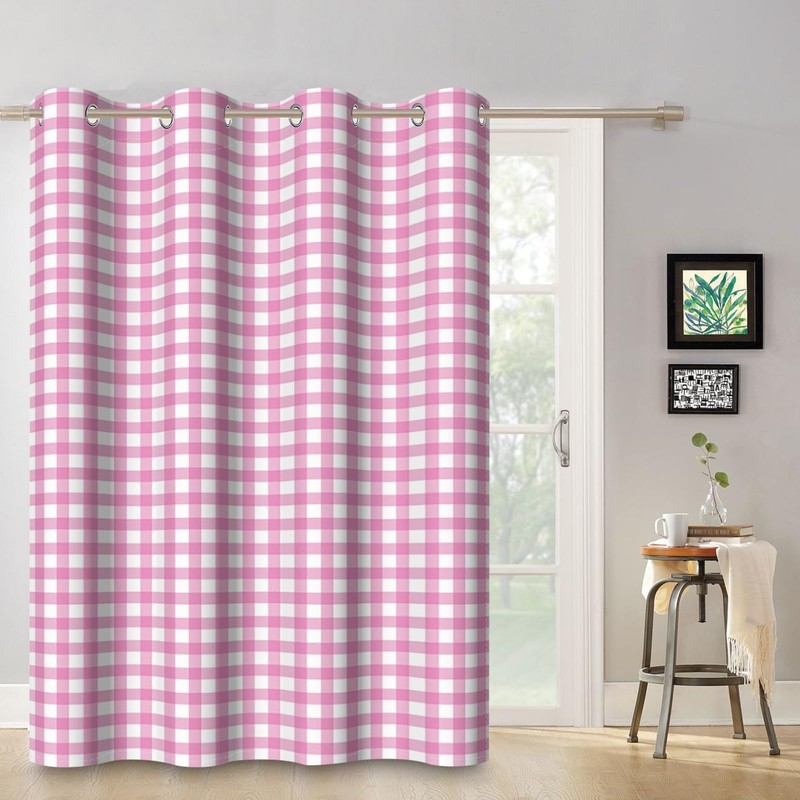 ggaimwf 107 x 160 cm Plaid Eyelet Curtain Buffalo Check Purple and White Gingham Pattern Farmhouse Privacy Insulated Thermal Grommet Blackout Window Curtains for Bedroom Living Room, 1 Single Panel