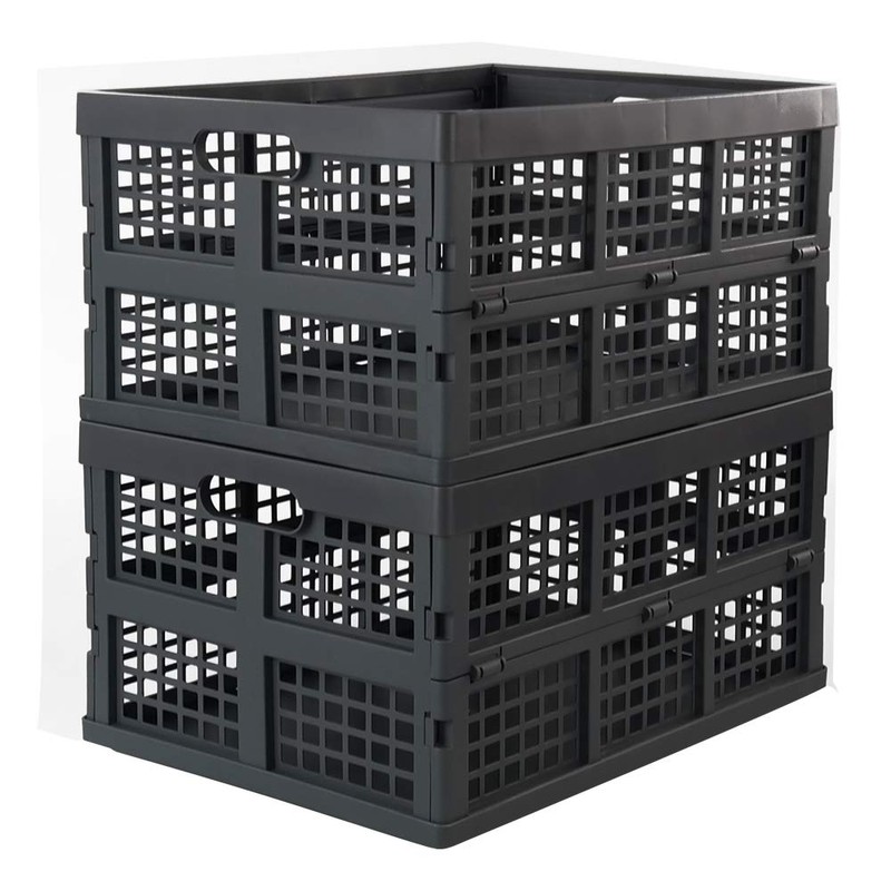 Ggbin 34 Liter Folding Plastic Containers, Grey Plastic Crate, 2 Packs