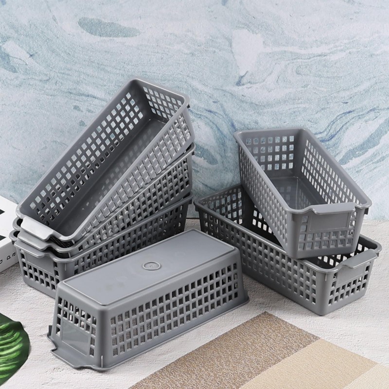 Ggbin Slim Plastic Storage Basket, 6 Packs Small Desktop Organizer Basket Bins, Grey