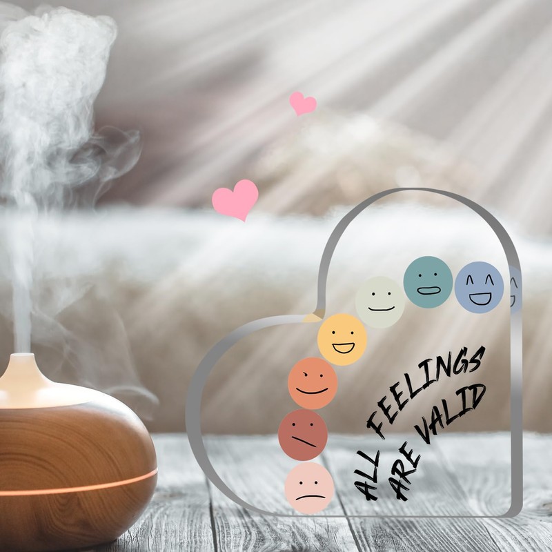 Ggjgrpx Heart-Shaped Mental Health Acrylic Sign, 4 inches x 4 inches, Positive Affirmation Decorative Sign, Indoor Personal Spaces, Wall Mount, Tabletop