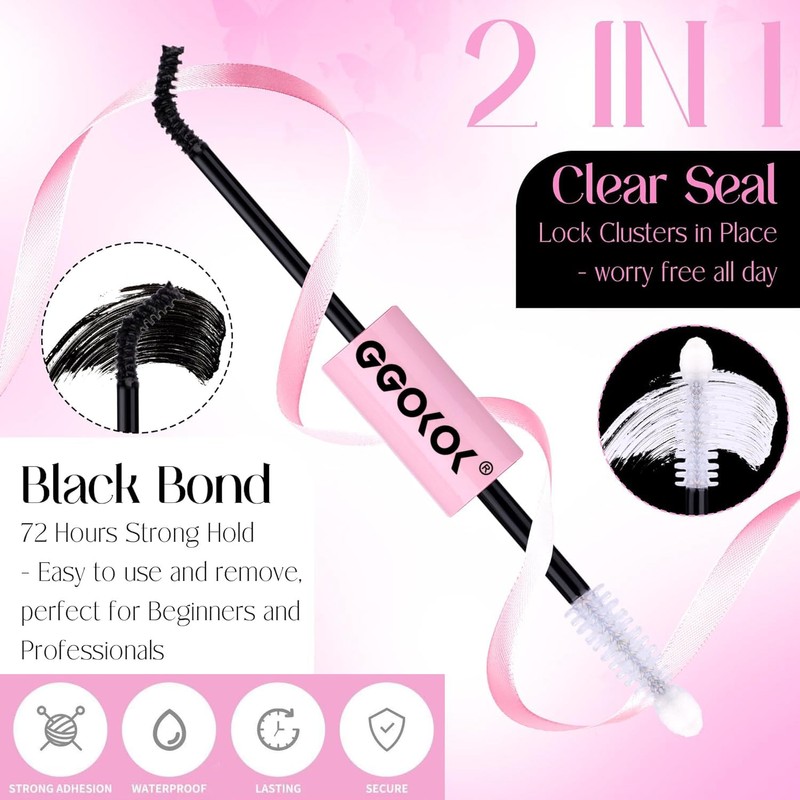 - Anwendungstipps - Zuerst rollen Sie das Wimpernband vorsichtig mit einer Pinzette herunter; dann tragen Sie Lash Bond auf Ihre natürlichen Wimpern auf; Als nächstes platzieren Sie die Wimperncluster unter Ihren Wimpern; schließlich verwenden Sie Lash Seal Brush zum Verriegeln, ein perfektes Augen-Make-up ist abgeschlossen