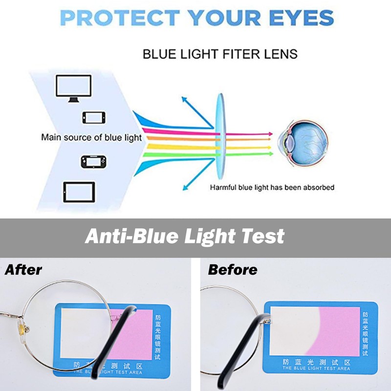 The blue light blocking lens can effectively block 99% of ultraviolet and blue light, prevent glare, fatigue, headaches and dry eyes caused by blue light, and reduce eye fatigue when using a computer and working 24/7.
