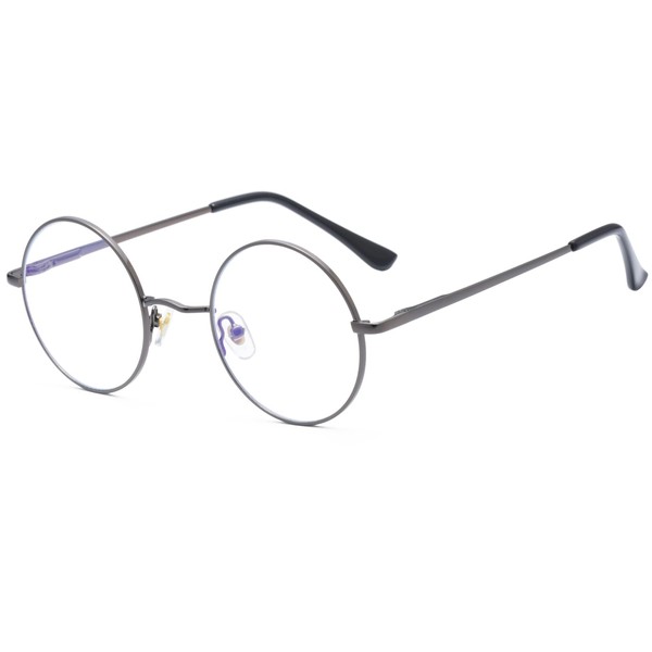 Ggpyyon Blue Light Filter Glasses Women Men Retro Round Glasses Blue Light Blocking Glasses Without Prescription Blocking Blue Light Glasses Computer Glasses, Gun Frame