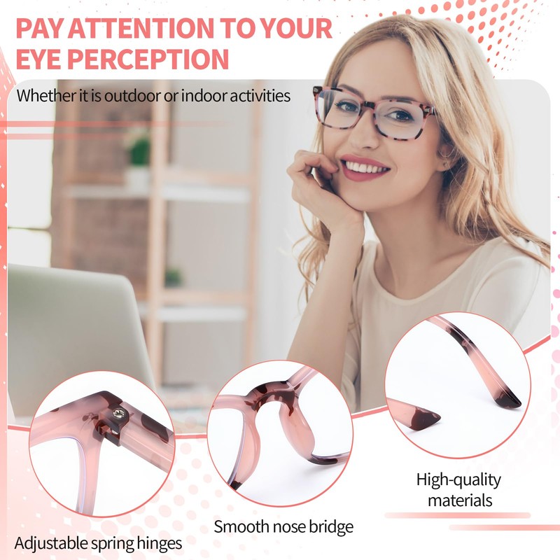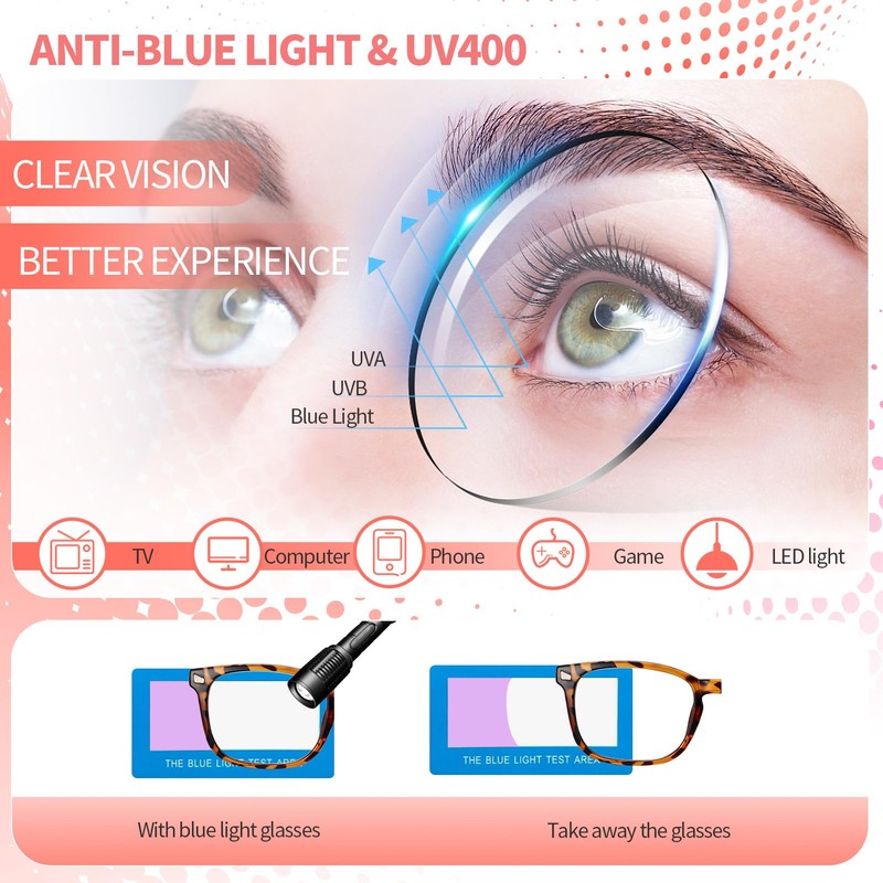 - 【Blue Light Blocking】These lenses help reduce exposure to potentially harmful blue light emitted from digital screens, which may contribute to less eye strain during extended reading or work sessions