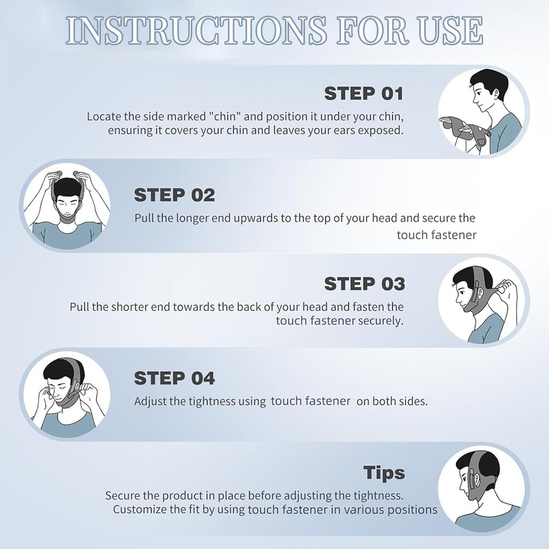 - Anpassbares Design: Dieses Gesichtsstraffungsband ist ergonomisch gestaltet und verfügt über einen Klettverschluss, der sich bequem an verschiedene Gesichtsformen anpassen lässt. Es bietet eine bequeme Passform und sorgt dafür, dass die Gurte an Ort und Stelle bleiben, ohne zu verrutschen.