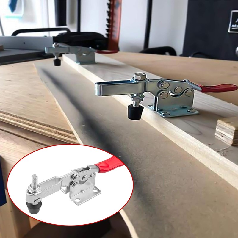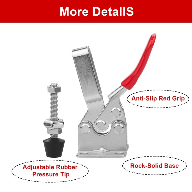 - Our anti-slip horizontal toggle clamp is made of 304 stainless steel, which makes the toggle button less rusty and stiffer. They are made of silver and red rubber and provide a stylish and durable look