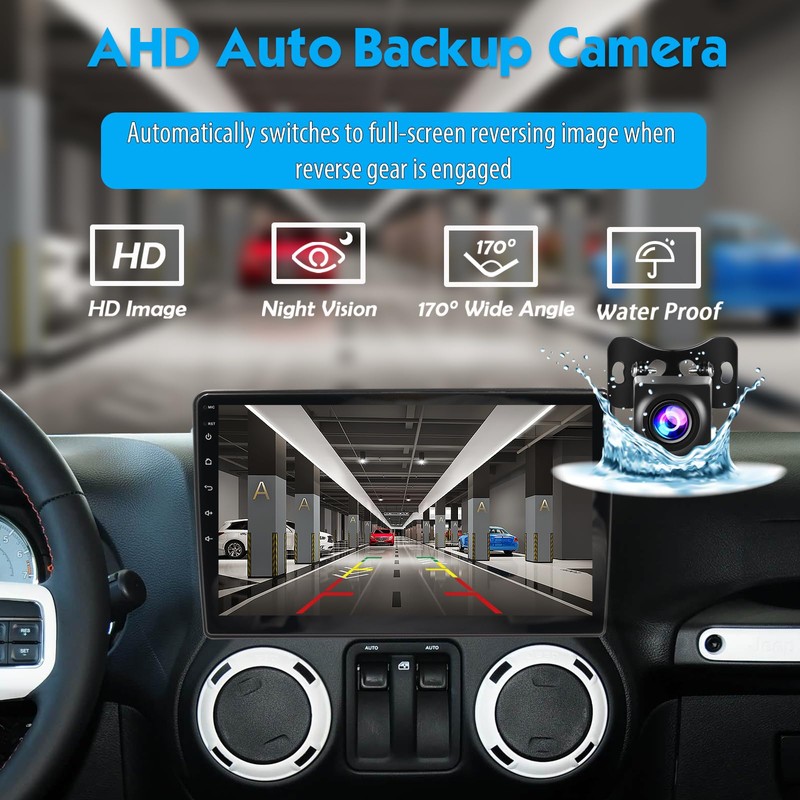 - Upgrade from Regular LED to the Latest AHD Rearview Camera: The image resolution is significantly improved to 1080P, making it display clearer and showing details such as license plates and obstacles more clearly. With more advanced sensors and image processing technology, it can also present more balanced brightness and color in low light. The reversing picture will be displayed on the 10-inch large screen immediately after you put the car in reverse gear, with a delay of less than 30ms!