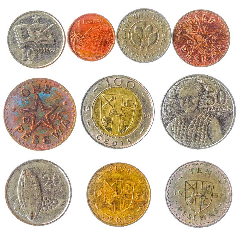 - A LIMITED EDITION. 10 RANDOMLY PICKED COINS FROM THE REPUBLIC OF GHANA. 10 Ghanaian coins. Collectible coins picked randomly since 1965. From 1 pesewa to 1 cedi.