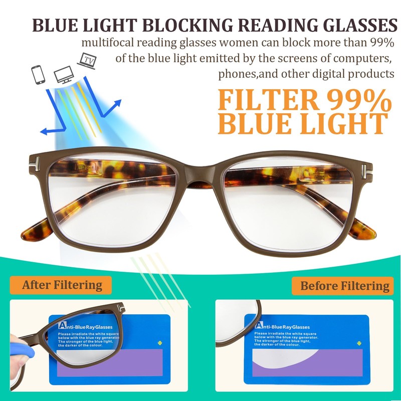 - 【Perfect for Indoor & Outdoor - Seamless Vision Anywhere】Transition reading glasses are ideal for gardening, outdoor adventures, travel-friendly readers, office work, or use at home. Progressive blue light blocking reading glasses include a hard case and microfiber cloth for protection, storage, and cleaning
