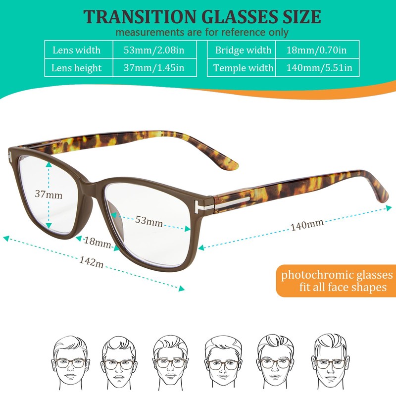 - 【Unisex Stylish Design】Classic brown frame photochromic progressive glasses for men and women. Adjustable temples and no-line lenses offer a discreet, professional look for any occasion. If you have any questions about multifocus progressive readers, please send us and we will provide a range of solutions