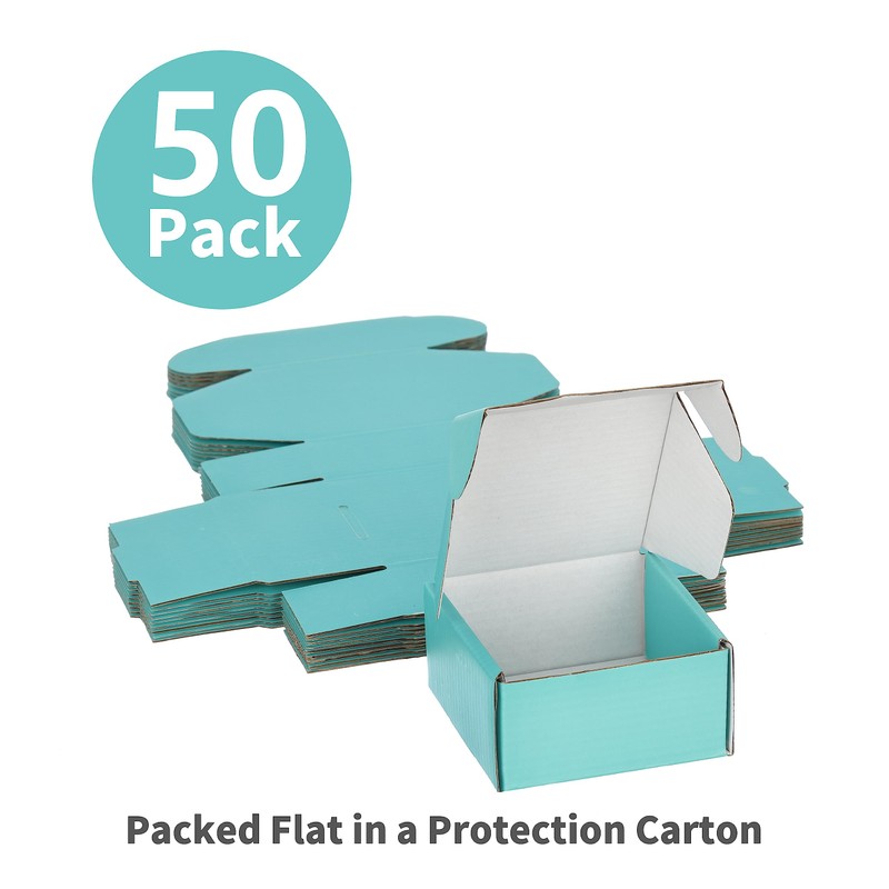 GHEIR 50 Pack 4x4x2 inches Small Shipping Boxes Teal, Corrugated Cardboard Boxes for Mailing Packing