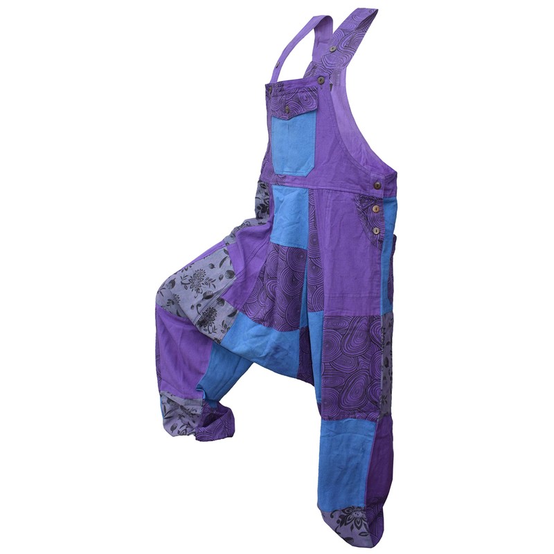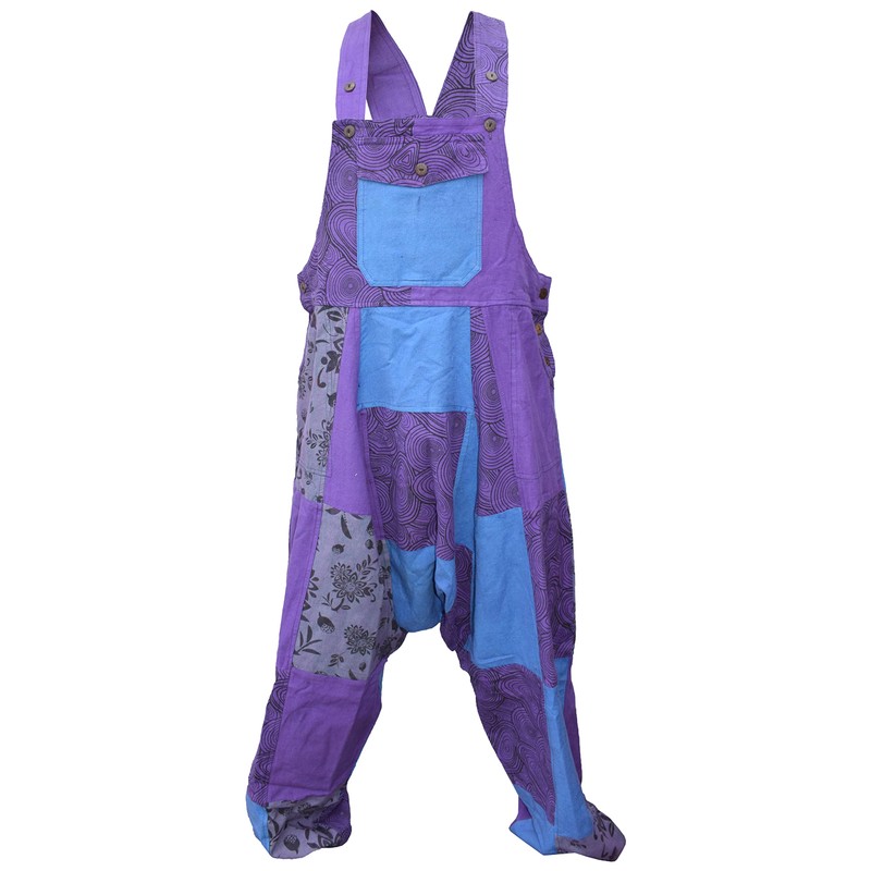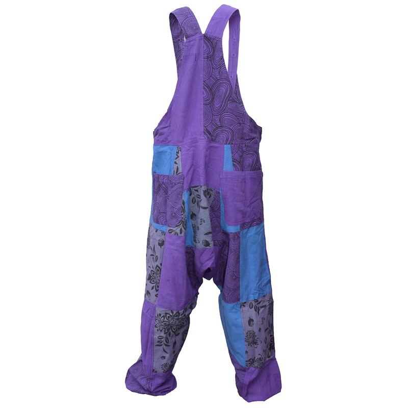 Gheri Mens Loose Fit Patchwork Printed Cotton Harem Dungarees Purple Mix Medium