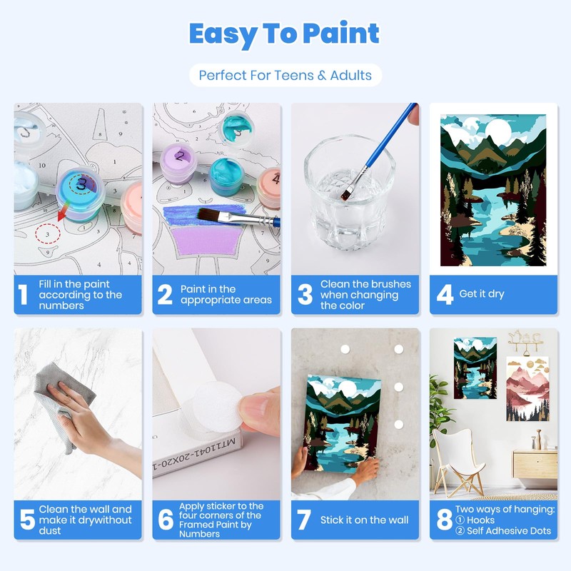 - EASY TO PAINT Our paint by numbers kit shows exactly where each color needs to be applied without the need for color mixing. It is suitable for all ages and abilities - adults, children or seniors. You just need to follow the numbers on the canvas to create an impressive painting. Simple and easy to follow.