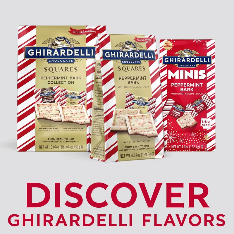 - Create special memories and sweeten your holiday traditions with GHIRARDELLI Peppermint Bark Chocolate SQUARES. Each individually wrapped square features festive peppermint flavor layered with rich, smooth chocolate for a truly indulgent holiday treat. Perfect for gifting coworkers, sharing with friends, or enjoying at home, these premium peppermint bark chocolates deliver GHIRARDELLI’s signature balance of flavor and craftsmanship. Made with high-quality cocoa beans and premium ingredients, these kosher treats bring sparkle to every moment. GHIRARDELLI Makes the Holidays A BITE BETTER.