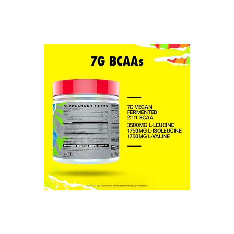 • BCAAs and Epic Flavors: GHOST BCAAs and Sour Patch Kids Blue Raspberry flavorwhat's not to love? Enjoy your favorite sour candy flavor during your workout, throughout the day, or before a night out. 30 servings per container.