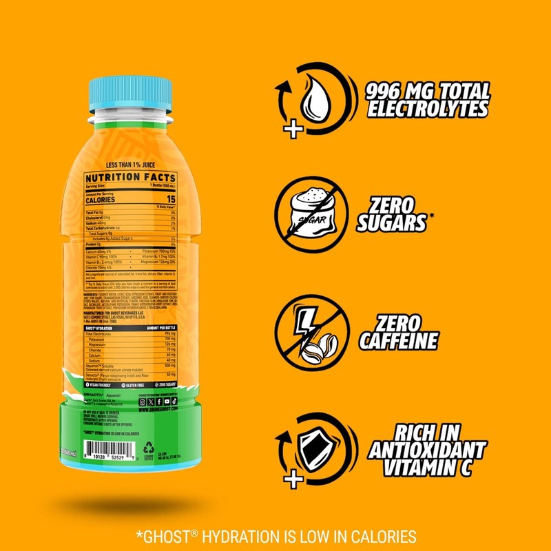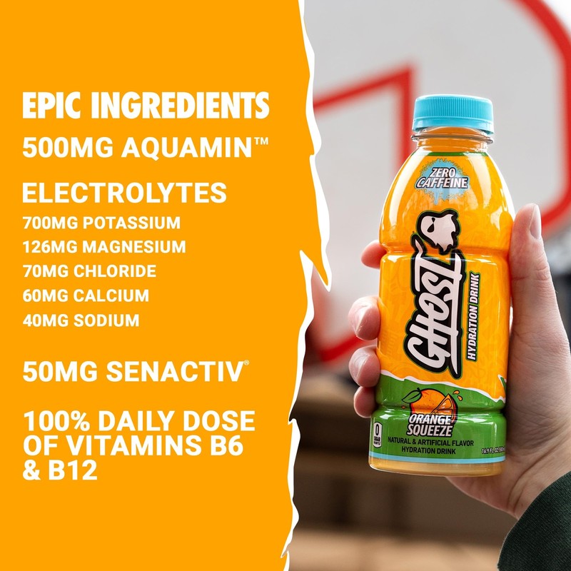 GHOST Hydration Drink Orange Squeeze - RTD Sports Drinks with Electrolytes fo...
