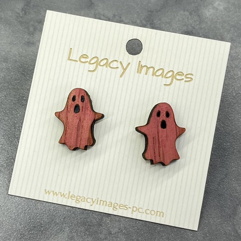 Ghost Stud Earrings, White, Pink or Silver (Pink)