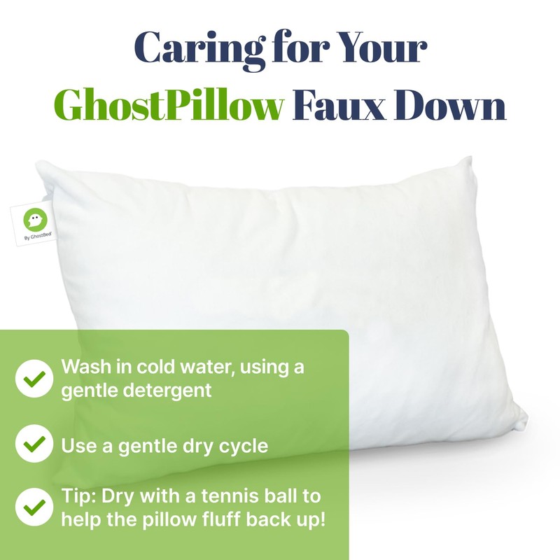 - COZY UP - Designed to match the comfort of a traditional down-filled pillow you’d find at luxury hotels, the GhostPillow Faux Down is made with huggable, squeezable microfiber gel