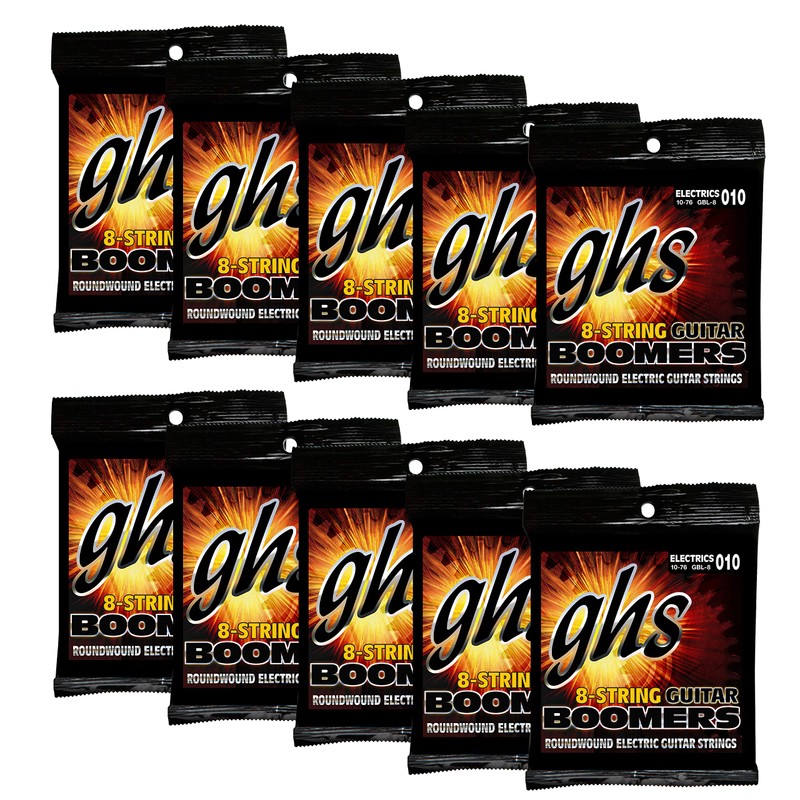 GHS Strings Boomers 8-String Electric Guitar Set - LIGHT - (10-76) - GBL-8 SET, Pack of 10