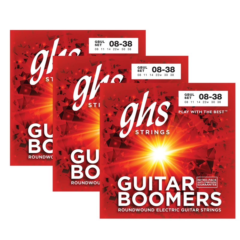 GHS Strings Guitar Boomers, Nickel Plated Electric Guitar Strings, GBUL SET - Ultra Light (8-38), Pack of 3