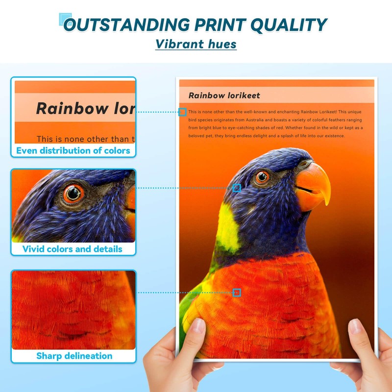 - New upgraded ink ensures pure color, smooth and uniform printing without clogging, ensuring clear printed text and images