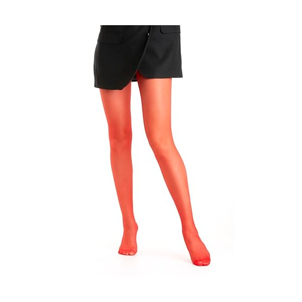 Gi&Gi Ladies Sheer Tights - High Waisted Tights Reinforced with Invisible Feet 20 Denier N 1493, red, L-XL