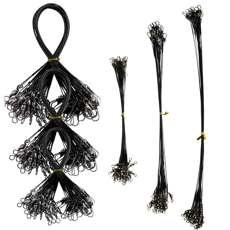 Feature : If you are a fishing enthusiast, then this one Fishing Wire Trace very much is for you!72 Pcs Fishing Wire with Snap with 3 Lengths of 15/20/25 cm.Protect the main line avoid momentary throwing and avoid damaging the main line after rubbing the main line and the guide ring.Resistance to wear after hooking bait or fish, protect the front end of the main line to avoid obstacles.Hidden main line reduce the vigilance of the fish.Buffer effect it can compensate for the instantaneous pulling force that can appear after the fish and play a buffer role.Specification:Material: stainless steelLength: 15/20 / 25cmCapacity: 15cm-6kg, 20cm-9kg, 25cm-14kgQuantity: 24pcs for each sizeColor: blackScope of delivery:72 Pieces pike traces