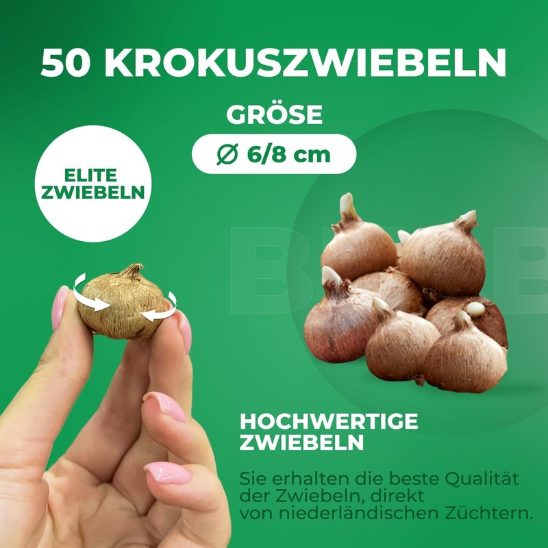 - Mix of 50 – This package contains 50 flower bulbs crocuses (no seeds), from which flowers grow in the garden in the months of February to March/April. It is a romantic blend of white, yellow, orange, blue and purple crocuses.