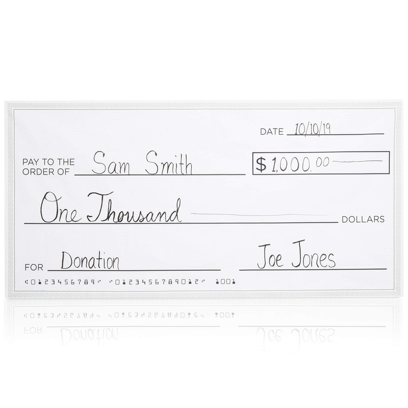 - What’s Included: You’ll receive 1 giant novelty check and a non-erasable black marker