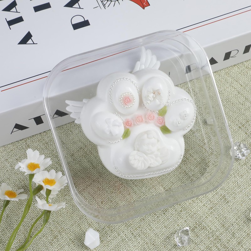 • Elegant Angelic Cat Paw Design: Features a charming cat paw shape in a soft white tone, delicately decorated with pastel pink flowers, angel wings, and a graceful bow for a dreamy and elegant aesthetic.