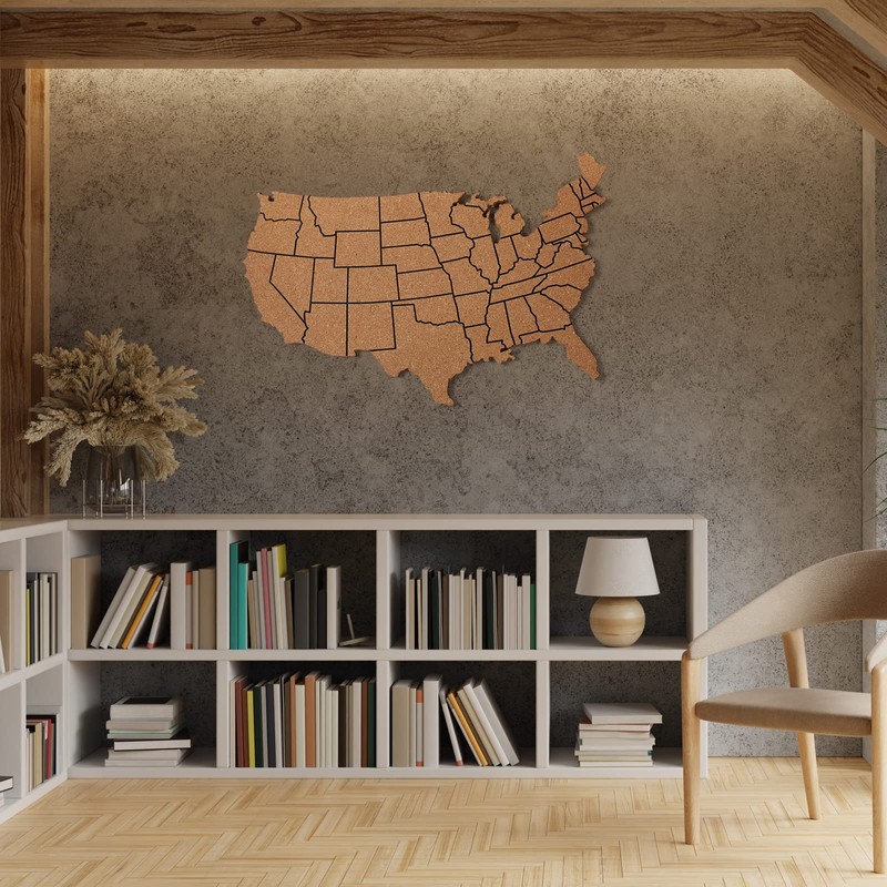 - Ideal Decoration: USA travel map pin board is designed with map shape, so you can apply it in your living room, bedroom or office and proudly show your friends, colleagues, and family where you've been and where you're going next
