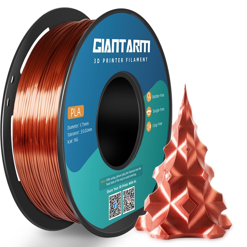 • Shiny Silk PLA Smooth and shiny finish like real silk, no extra polishing needed, printing at a high detail results in a beautiful finish. GIANTARM high quality silk PLA filament brings arts & crafts and 3D projects smooth shiny silk-like surface which definitely gives an eye-popping result!