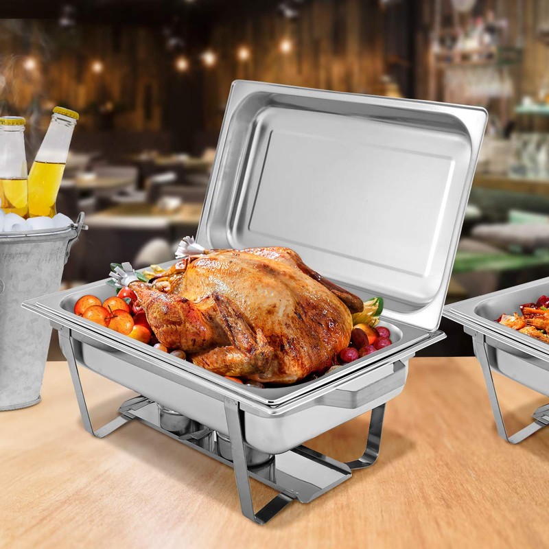 - Complete Accessories Set- Our chafing dish set contains water pan, food pan and lid, sturdy frame rack and alcohol furnace. After assembling it with detailed and specific instruction, you can use to cook food.