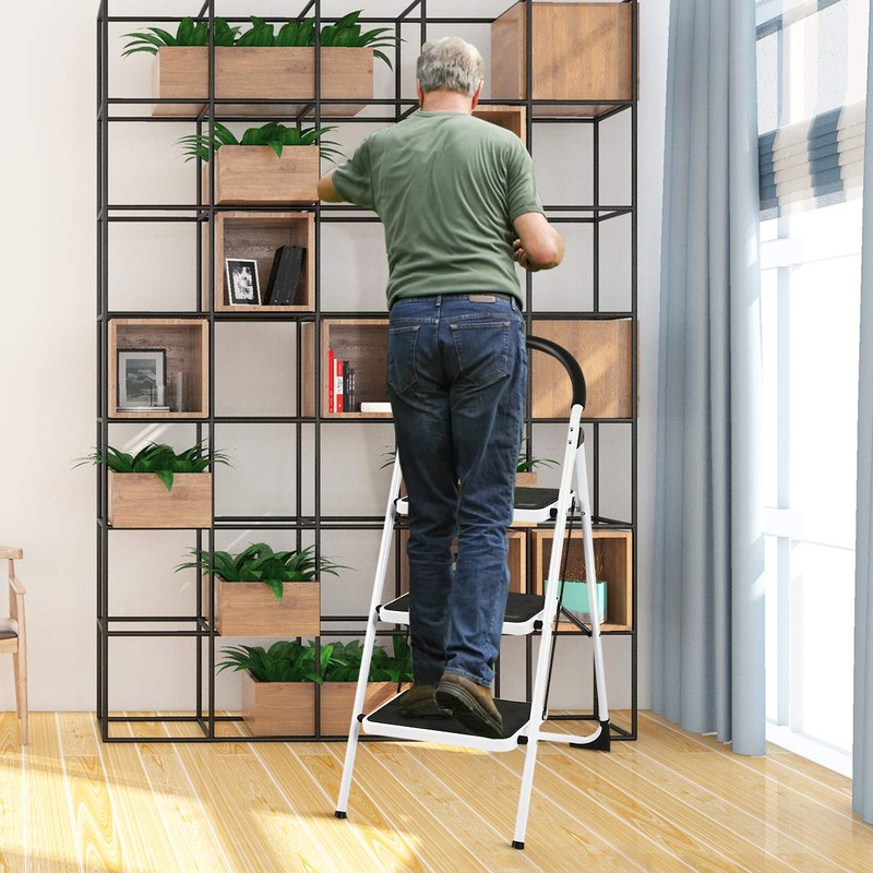 • 『Multi Use & Function』- our foldable two steps ladder is ideal tool for any task in various places such as kitchen, office, bathroom, and garage etc. The stepladder can be used for reaching a high cabinet, changing the light bulb or washing the windows. Our ladder makes it easier to get any job done.