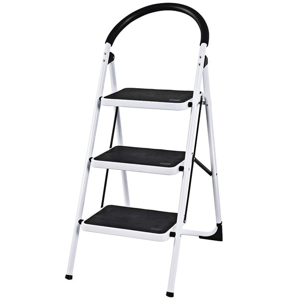 • 『Space-Saving Folding Design』- Our Giantex 3 step ladder comes fully assembled. Foldable design greatly helps you save much room space. Featuring light weight and portability, it is also convenient for you to take it for any outdoor activity or work. The top hand grip also brings you much convenience for taking or transporting the ladder. Folding dimension is18.9"W X4.1"Thickness X48.0"H.