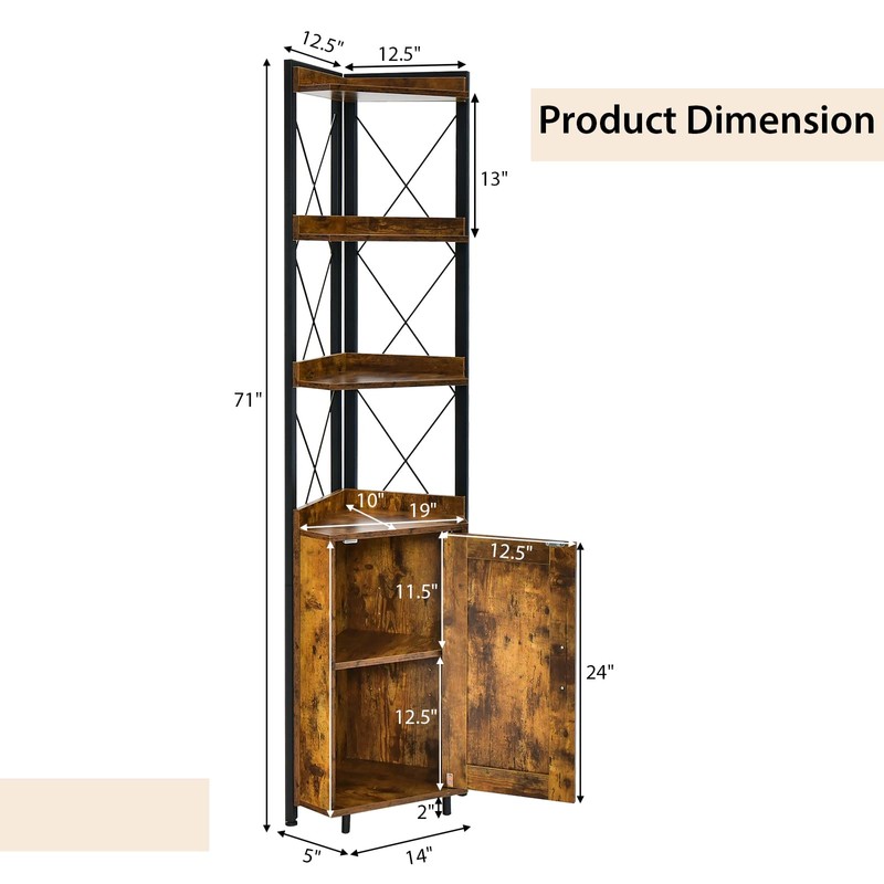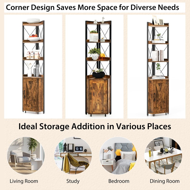Giantex 4-Tier Corner Shelf with Cabinet - 71" Tall Free Standing Storage Shelves Rack Plant Stand, Industrial Narrow Bookshelf with Storage for Small Space, Living Room, Bathroom (Rustic Brown)