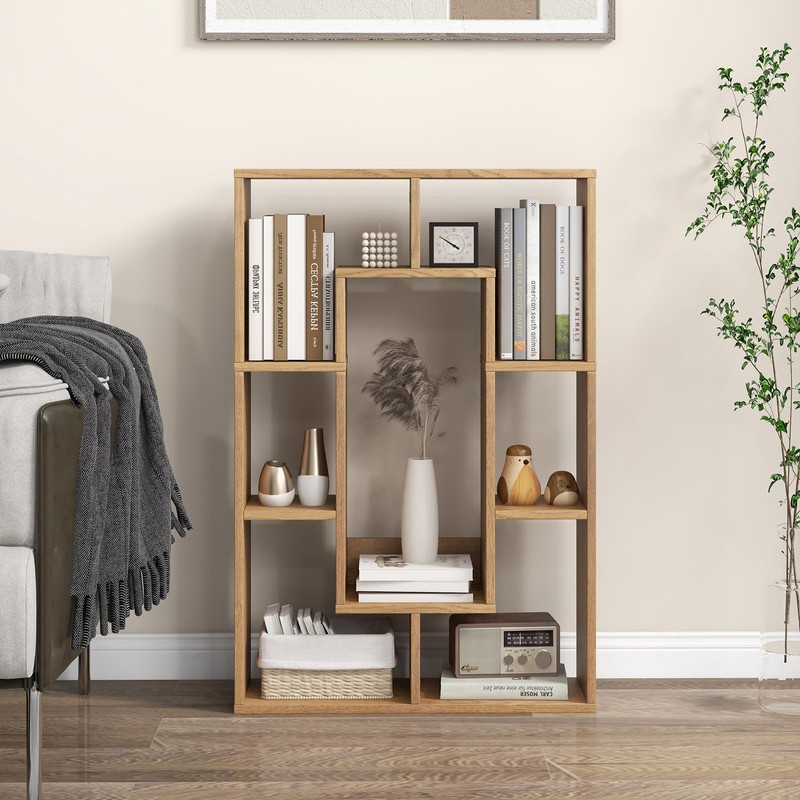 - [Unique Geometric Bookshelf]: Giantex book shelf stands out its unique geometric design, creating a cohesive and visually appealing space. Whether used for living room, study or office, the display shelf will become a standout piece that elevates the overall look of your living space.