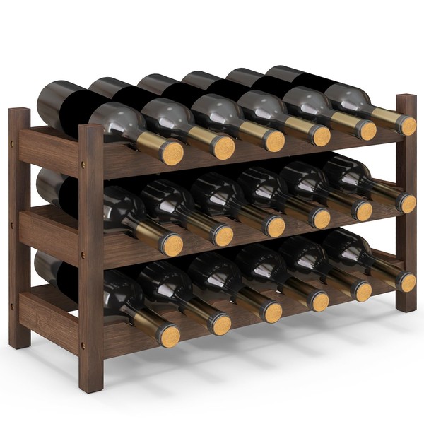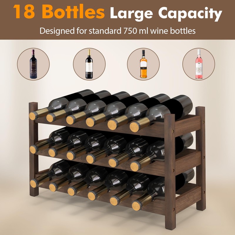 Giantex Bamboo Wine Rack, 3 Tier 18 Bottle Wine Storage Cabinet Shelf, Small Wine Rack Bottle Organizer Freestanding Counter, Countertop Wine Rack for Kitchen, Bar, Pantry & Wine Cellar, Coffee