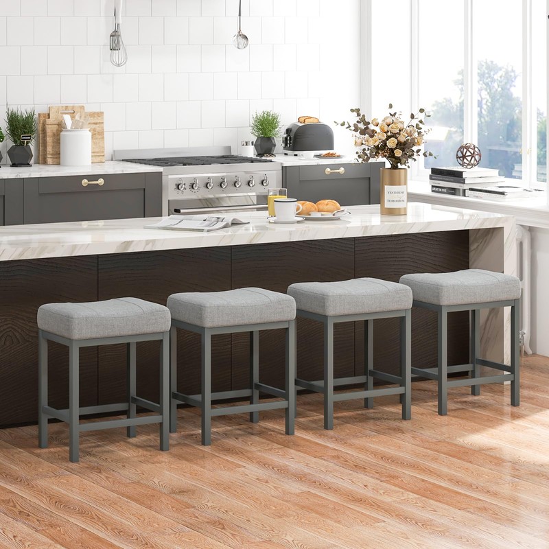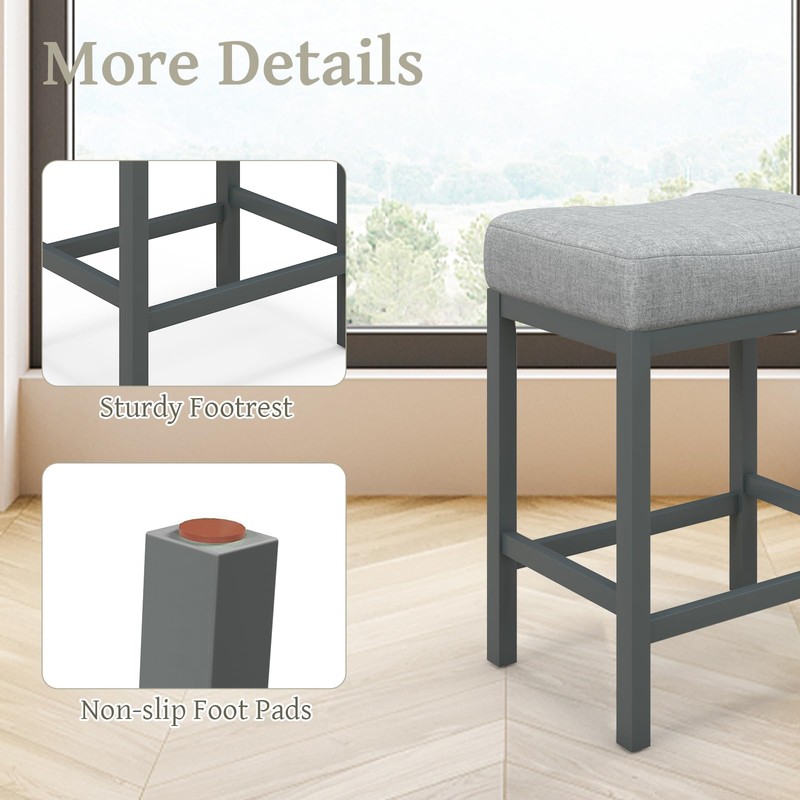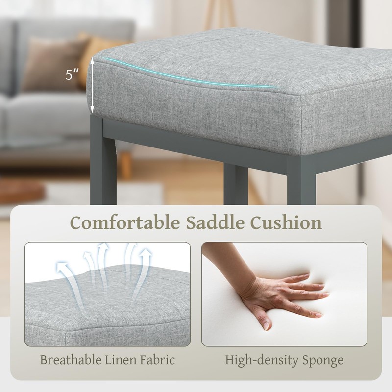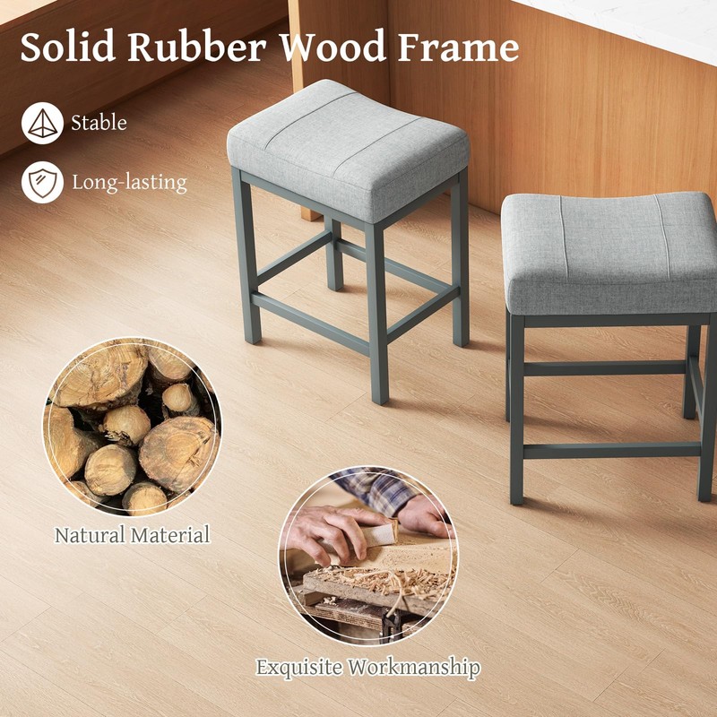 Giantex Counter Height Bar Stools Set of 2, 24.5" Backless Linen Fabric Bar Saddle Stools w/Solid Rubber Wood Frame & Footrest, Modern Upholstered Barstools for Kitchen Island, Home Bar, Cafe, Grey