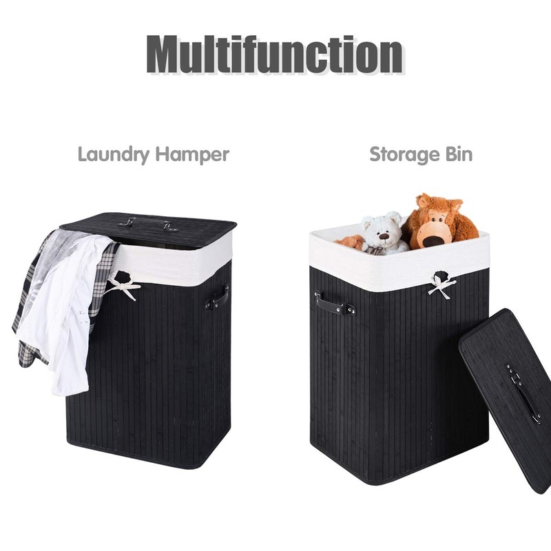 Giantex Laundry Hamper Bamboo Laundry Basket, Clothes Hamper with Lid and Removable Liner, Collapsible Storage Basket with Handles, Rectangle Clothes Bin for Laundry Room Bedroom(Black)