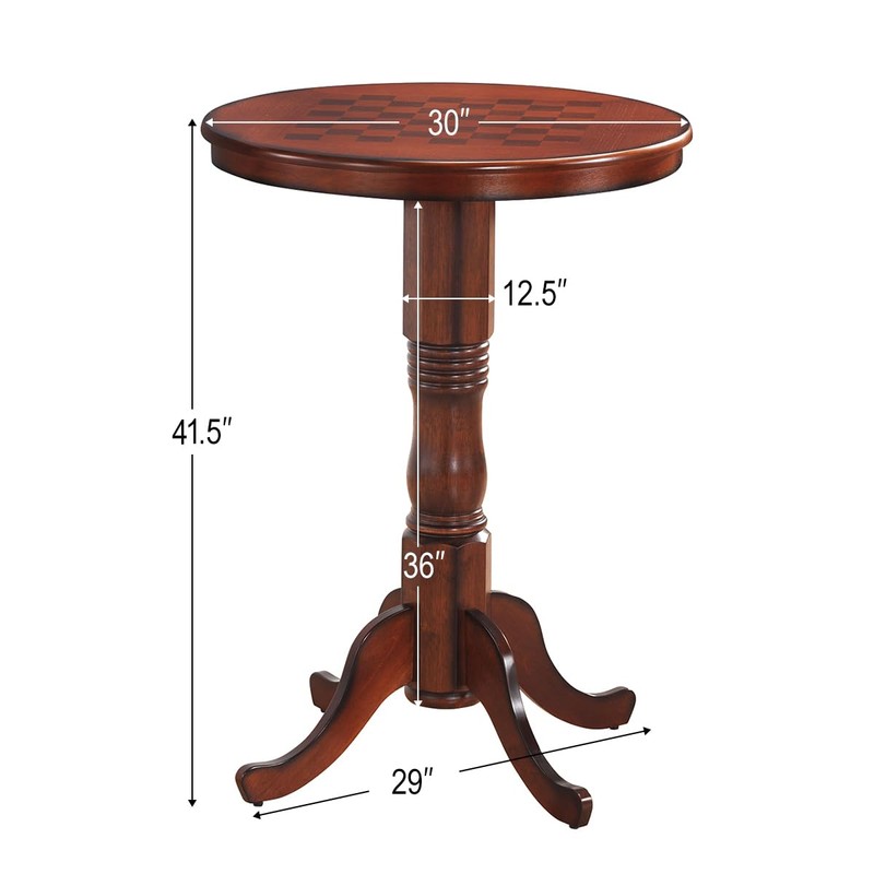 Giantex Round Dining Table, 30" D X 41.5" H, Wooden Pub Pedestal Side Table W/Chessboard, Adjustable Foot Pads, Multi-Purpose Dinner Table for Small Space, Kitchen, Dining Room, Restaurant (Walnut)