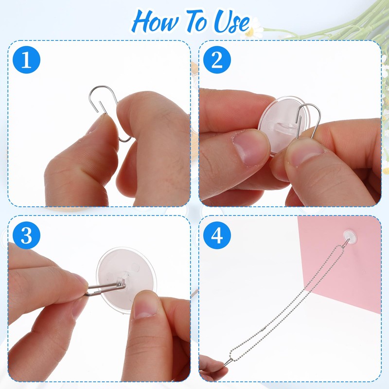 • 【Easy to Install】These Round Suction Cup Sticky Ceiling Discs are simple to use. Just peel off the protective film and stick the hook onto a clean, smooth surface. Press to remove any trapped air. No need for drilling or ceiling damage. Ideal for use on metal, glass, tile, wood, marble, and other smooth surfaces.