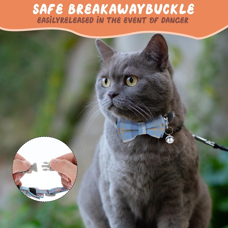 - 【Safe Breakaway Design】Our cat collar breakaway features a breakaway buckle for easy donning and quick manual release, ensuring your cat's safety during outdoor adventures. If the collar gets caught on something, they can easily escape.