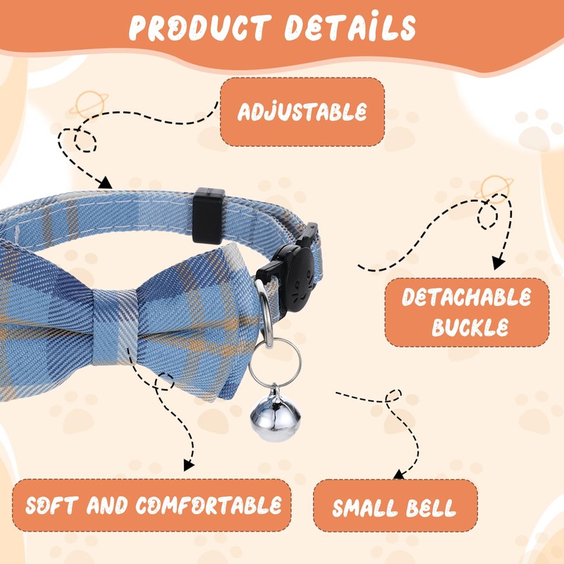 - 【Perfect Gift】Our light blue cat collar with bow tie is ideal for daily wear and special occasions such as festivals, photo props, Thanksgiving, Christmas decorations, or any other New Year party. It will be a great gift for your beloved furry friends.