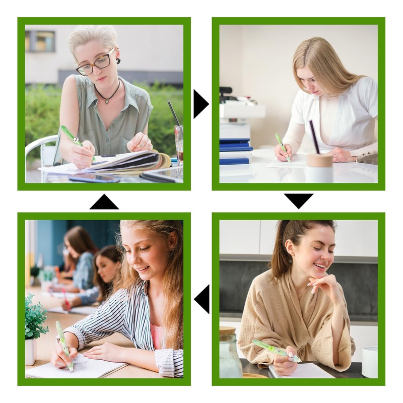 - 【Cute Retractable】These cute pens come in green and beige colors with adorable designs. The retractable mechanism and comfortable sponge grip make them easy to use and carry. Ideal for note-taking, marking, and planning.