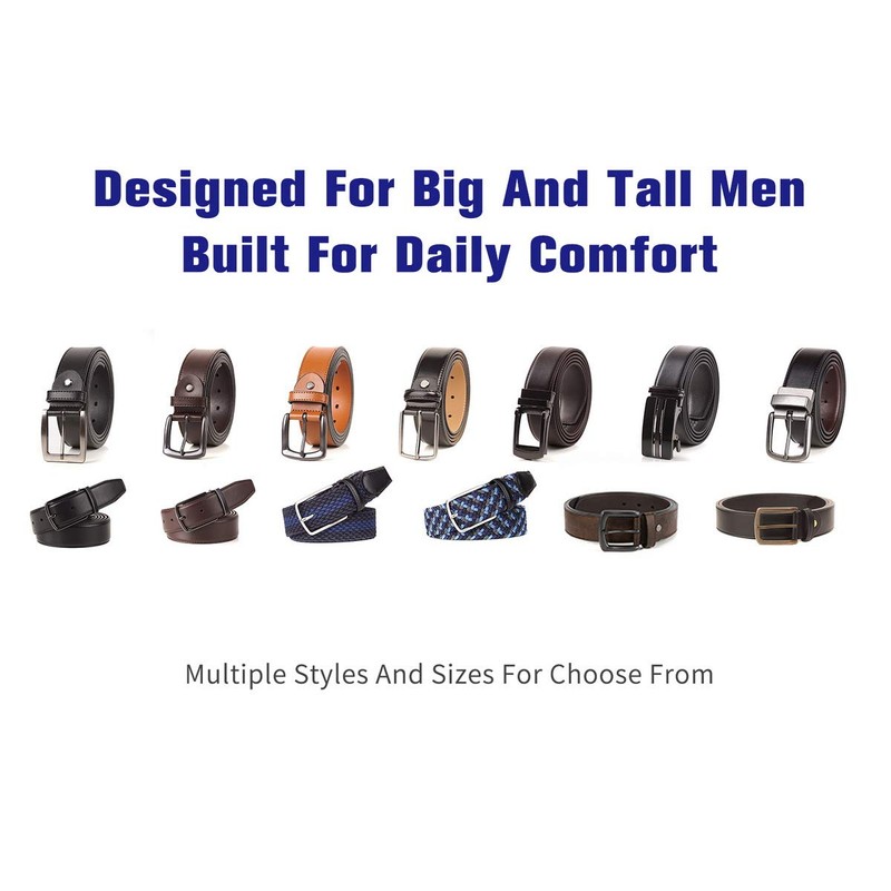 - Cinturones para hombre grande y alto. Diseñado para hombres grandes y altos, el cinturón está especialmente hecho de piel sintético de microfibra para un ajuste más cómodo. Cinturón ideal para hombres y niños, combina muy bien con pantalones casuales, jeans, uniformes de trabajo, vestido formal, etc. Adecuado para negocios, escuela, fiestas y uso diario casual