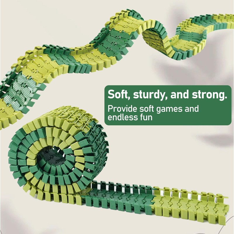 - Flexible Track Expansion Accessories: This dinosaur track expansion kit allows kids to freely construct and connect tracks, creating diverse layouts. Each track is highly flexible and can be easily pieced together into various shapes, whether it's winding curves, slopes, or bridges designs, offering more possibilities for kids' track creations.